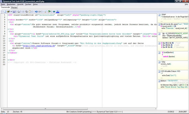 "Dynamical Text Suite" ist eine aufgebohrte Notepadvariante mit Quelltexthighlighting und einigen Extras |